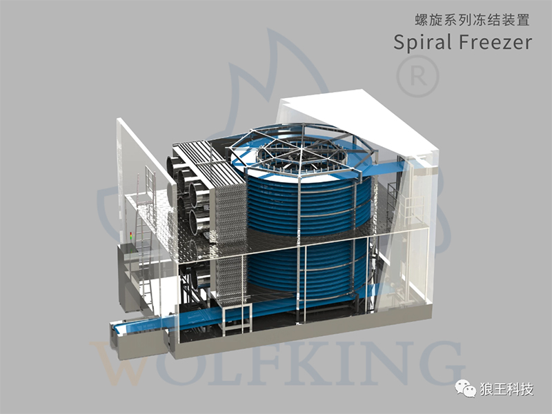 Производительность спиральной быстрой заморозки Wolfking Technology составляет от 200 кг / ч до 10 000 кг / ч, и ее можно настроить и изготовить в соответствии с различными продуктами и различными потребностями клиентов. Продукт широко используется не только для быстрой заморозки различных водных продуктов, продуктов из птицы, лапши и полуфабрикатов, но также особенно подходит для замораживания отдельных, гранулированных и небольших кусочков пищи. Спиральные морозильные камеры были установлены и используются во многих странах и регионах как внутри страны, так и за рубежом.